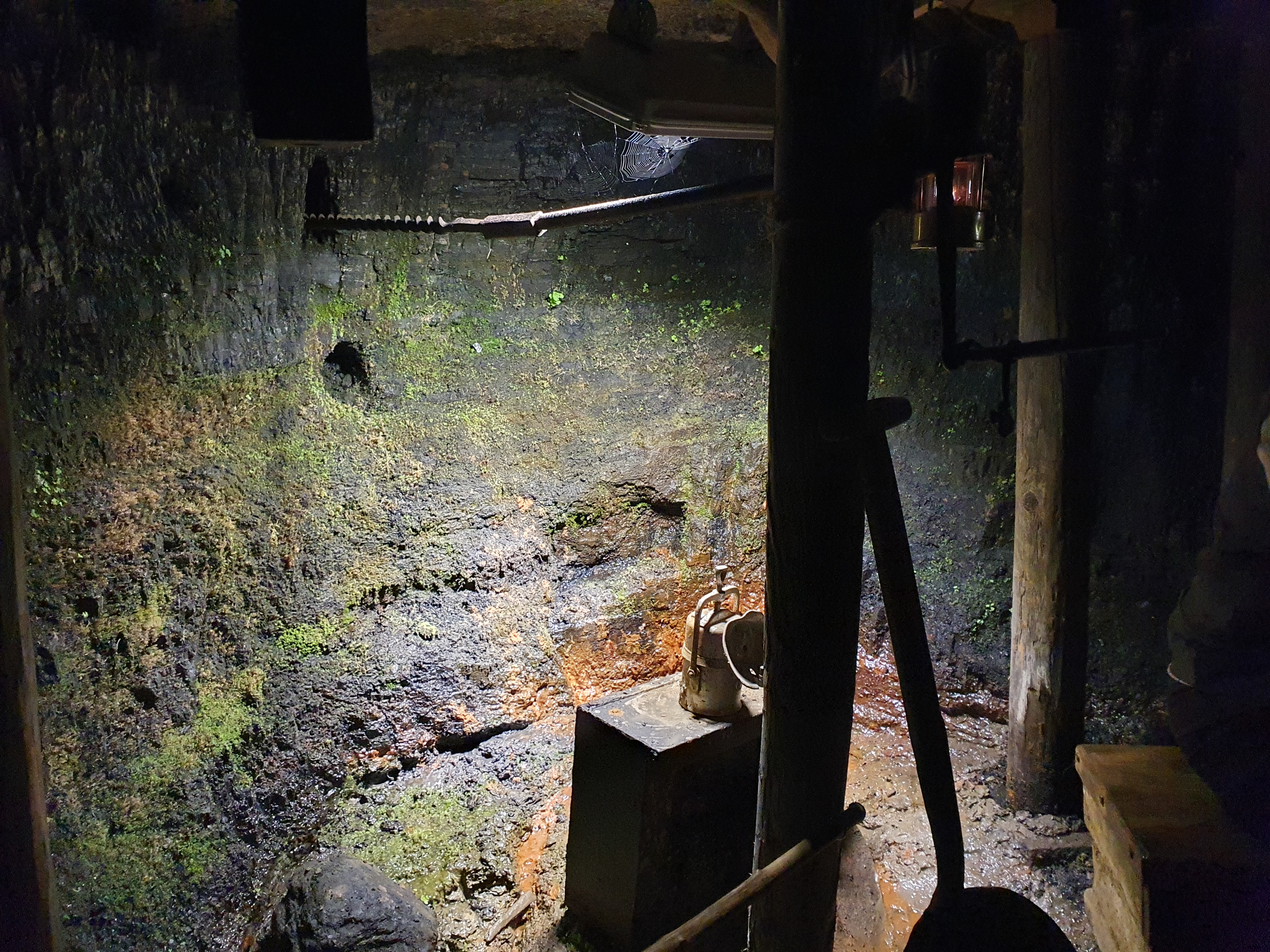 실제 광산 입구와 갱도, 보일러·펌프 등 설비가 재현되어 있고,