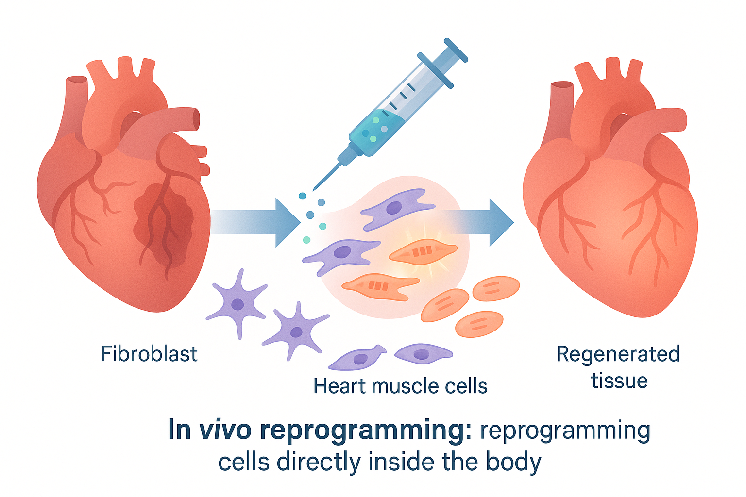 in vivo 리프로그래밍은 환자의 몸속에서 세포의 정체성을 직접 바꾸는 접근법입니다. 실험실에서 세포를 준비하는 in vitro 방식보다 훨씬 더 도전적이지만, 동시에 즉각적인 효과를 기대할 수 있는 방법입니다.