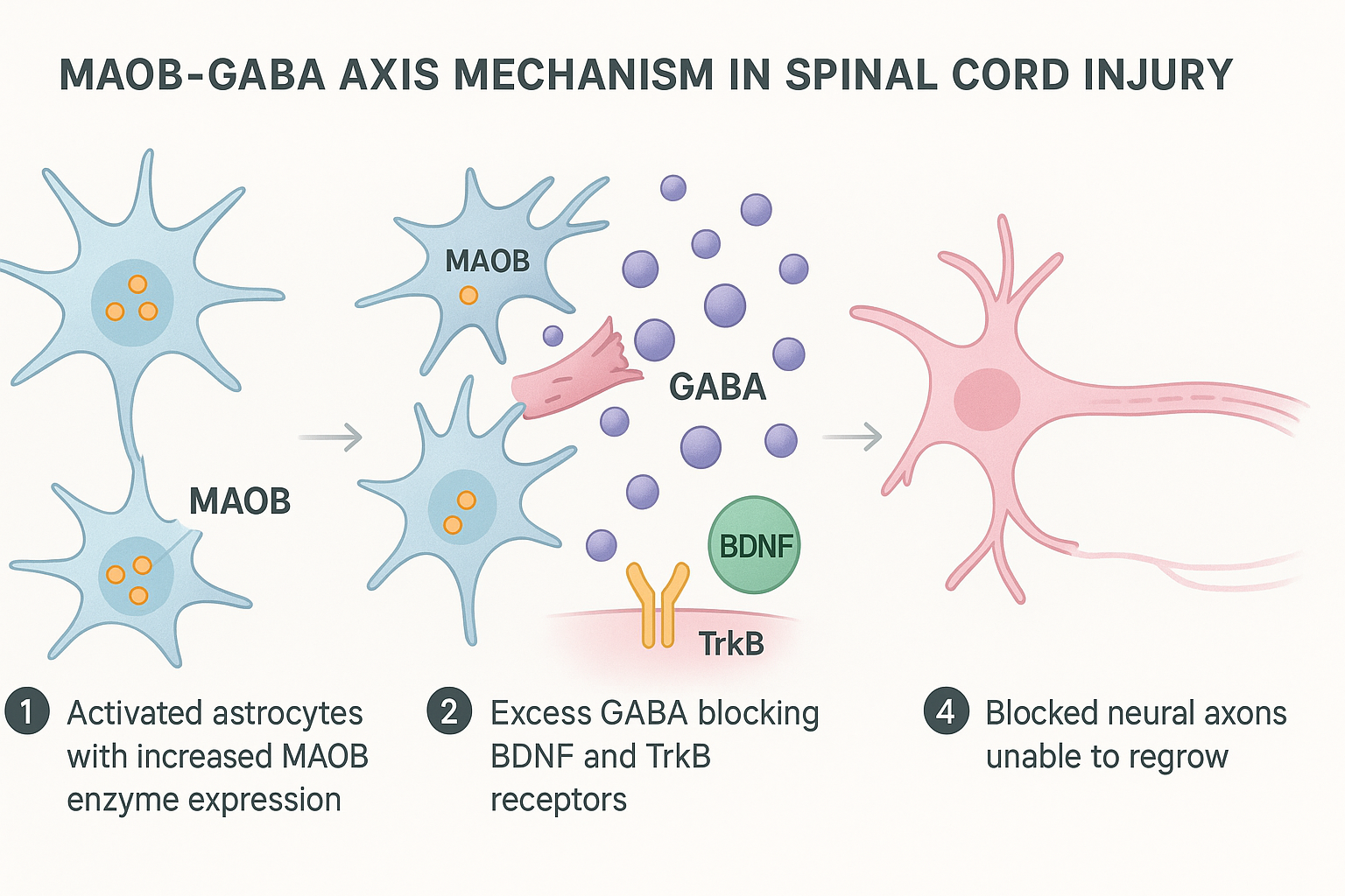 따라서, 별아교세포의 MAOB-GABA 경로가 척수 재생 실패의 주요 요인임을 입증했습니다.