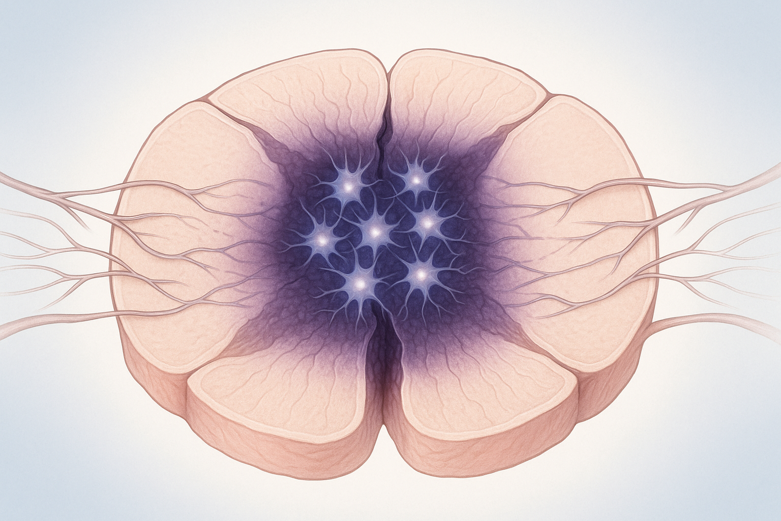 - 2단계: 증가된 MAOB는 GABA(Gamma-Aminobutyric Acid, 감마-아미노부티르산) 합성을 촉진하여, 손상 부위에서 GABA 농도가 정상 척수에 비해 현저히 증가함
