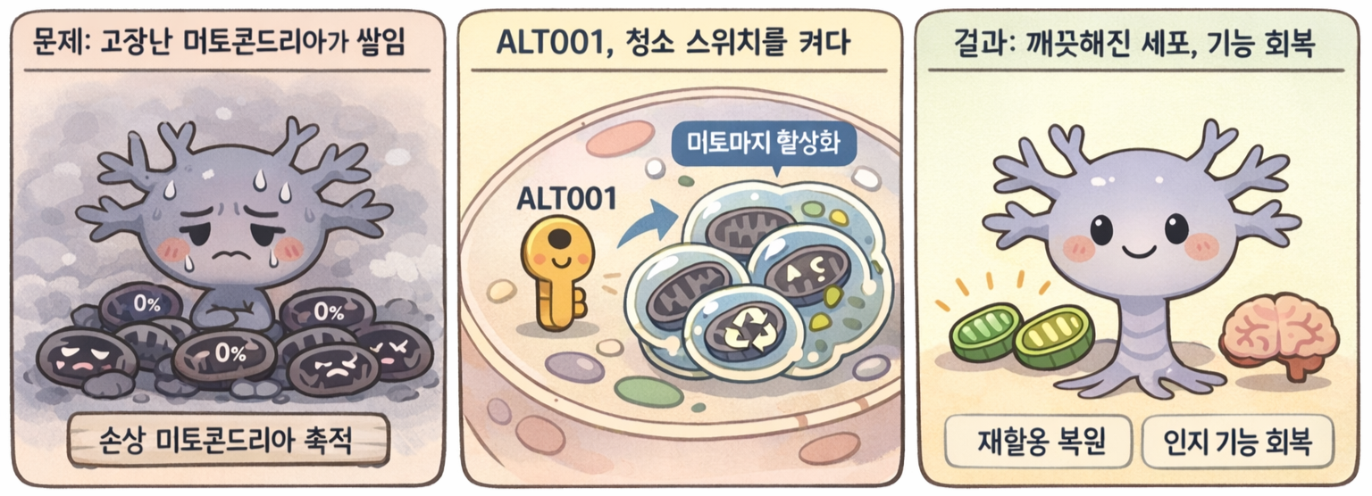 3. 알트메디칼. (2023). "미토파지 촉진 신물질 ALT001 개발." 한국경제, 2023년 11월 8일.